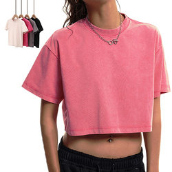 Venta al por mayor 250 Gsm camisetas de algodón recortadas de gran tamaño moda lavado Vintage Casual mujer ropa recortada camiseta