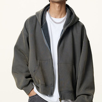 도매 사용자 정의 로고 350g 면 폴리 에스테르 박시 핏 빈티지 씻어 고민 양털 빈 특대 퇴색 지퍼 업 후드